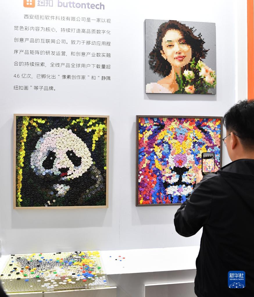 11月16日,觀(guān)眾在第七屆絲博會(huì )上參觀(guān)由紐扣制作的文創(chuàng )產(chǎn)品。