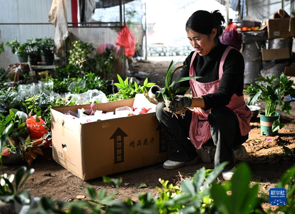 11月16日,在沭陽(yáng)縣顏集鎮堰下村幸?;êk娚讨辈セ?,花農在包裝花苗。