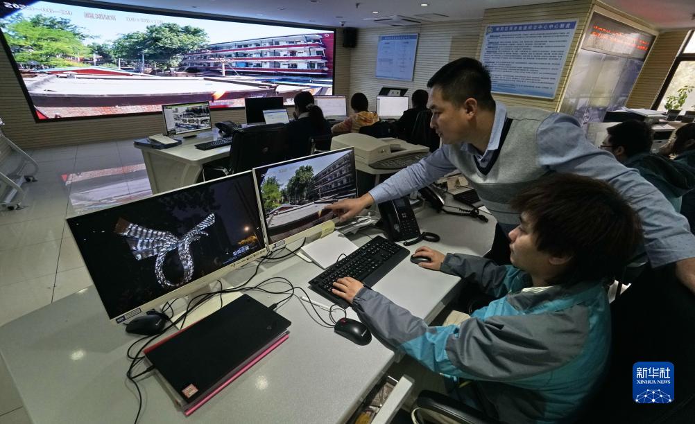 工作人員利用城市智慧大腦系統監控社區消防動(dòng)態(tài)(11月16日攝)。