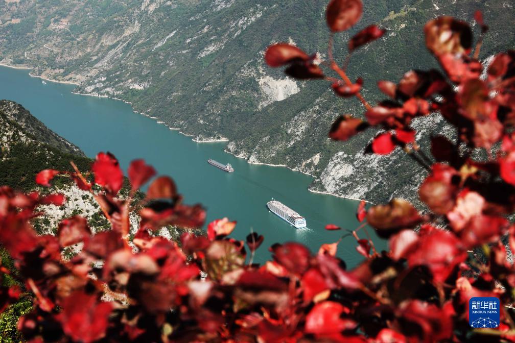 近期,長(cháng)江三峽兩岸紅葉如火似霞,美不勝收。