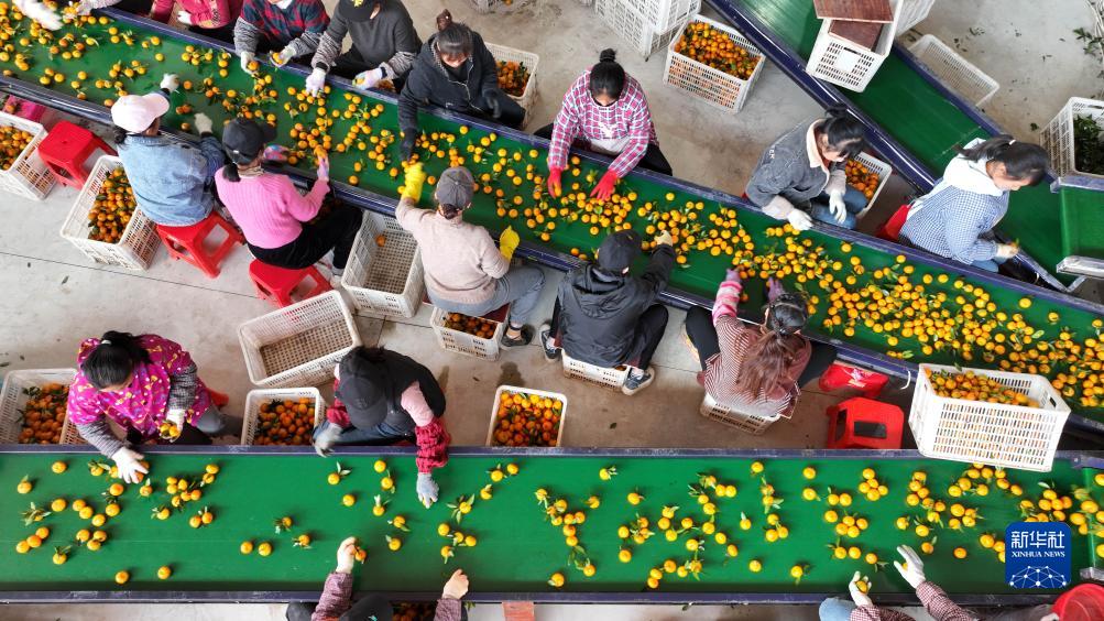 11月16日,在廣西柳州市柳城縣華僑農場(chǎng),工作人員分揀蜜桔。