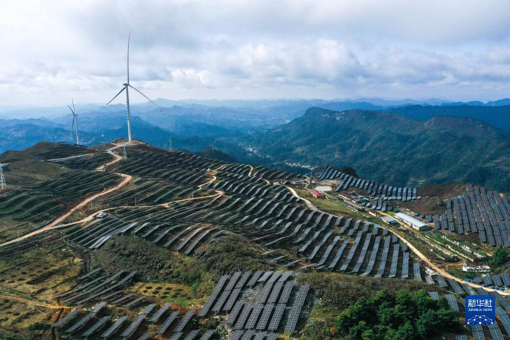 這是11月16日拍攝的貴州省石阡縣頂董坡風(fēng)電光伏項目(無(wú)人機照片)。