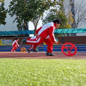 11月17日,河北省唐山市路北區光明實(shí)驗小學(xué)的學(xué)生利用課間時(shí)間玩滾鐵環(huán)。
