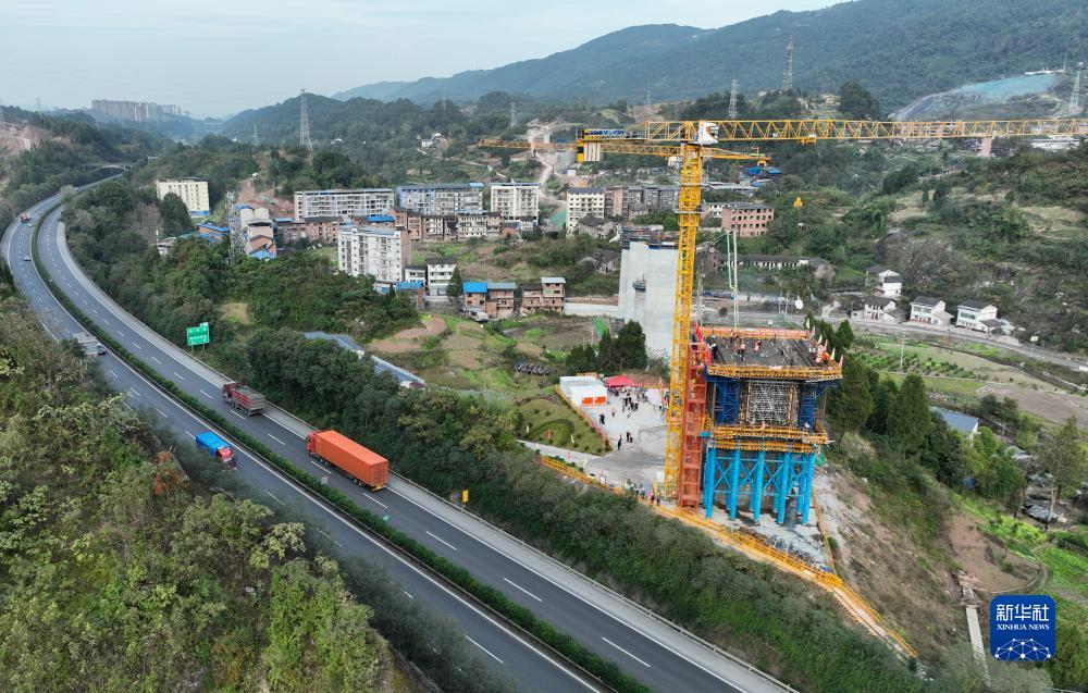 這是11月17日在四川省達州市境內拍攝的西渝高鐵檳郎特大橋連續梁施工現場(chǎng)(無(wú)人機照片)。