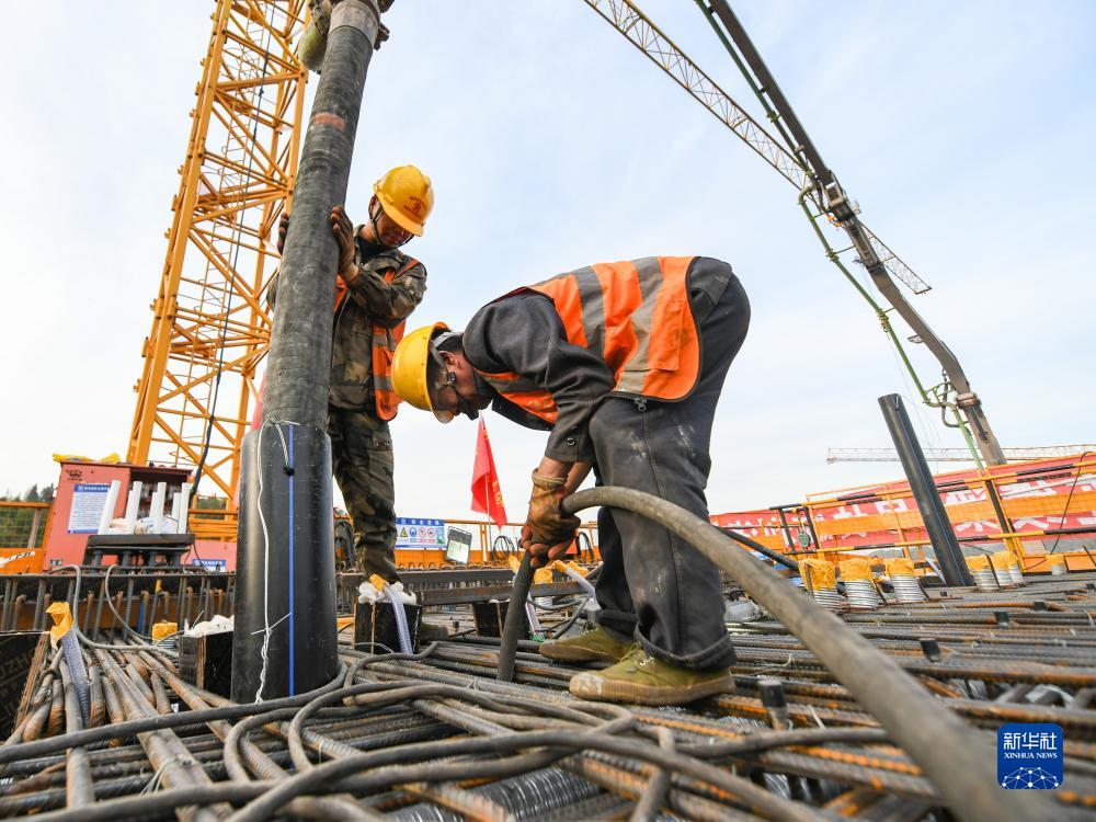 11月17日,工人在進(jìn)行混凝土澆筑作業(yè)。