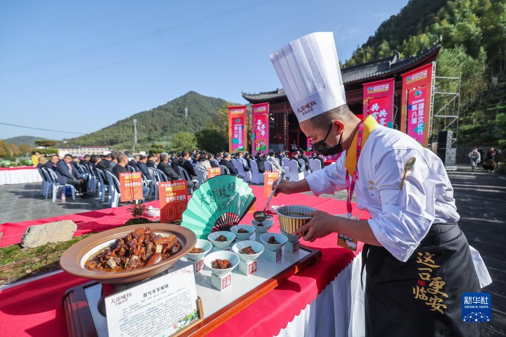 11月17日,在板橋鎮花戲村的湖羊文化節金廚爭霸賽上,參賽廚師制作特色湖羊美食。