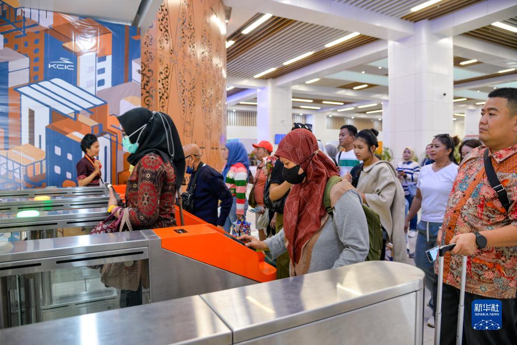 11月17日,在印度尼西亞雅加達的雅萬(wàn)高鐵哈利姆站候車(chē)大廳,人們刷票前往站臺。