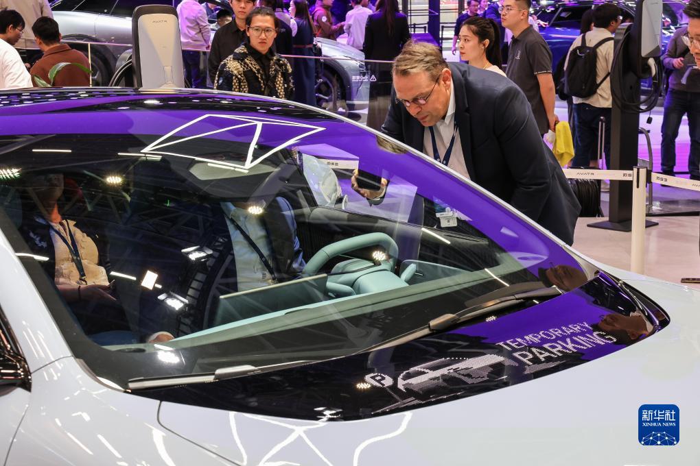 11月17日在廣州車(chē)展上拍攝的阿維塔12展車(chē)。該車(chē)型的智能泊車(chē)、遙控泊車(chē)等泊車(chē)功能成為其智駕的一大亮點(diǎn)。