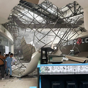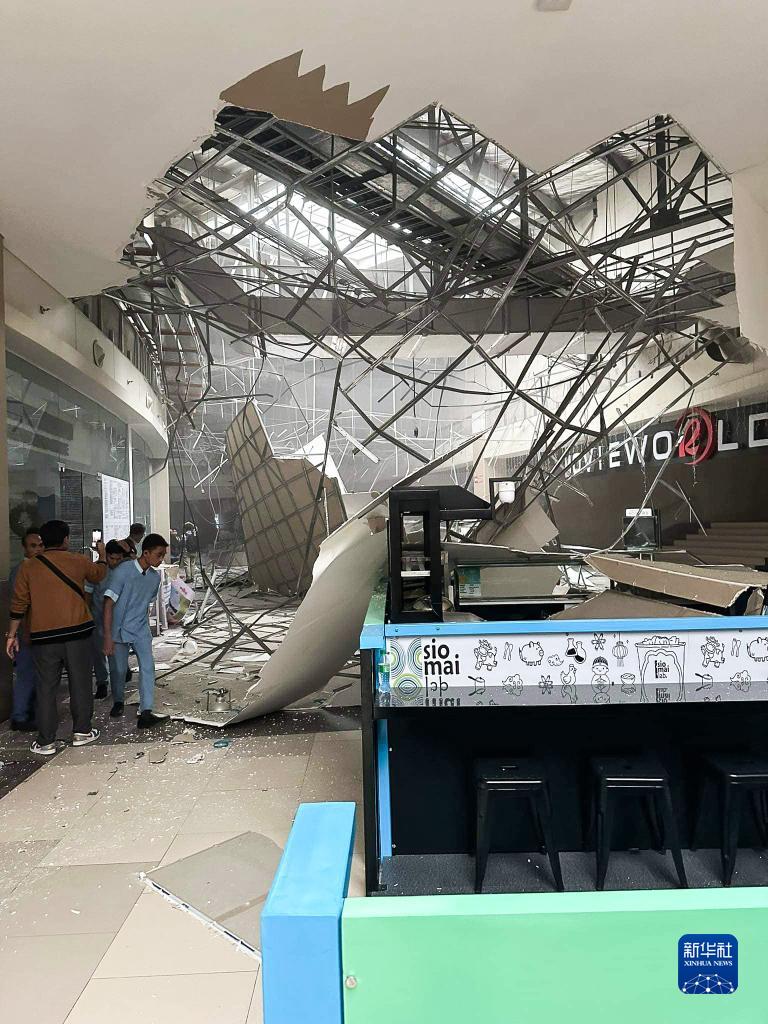 11月17日,在菲律賓桑托斯將軍城,人們查看地震造成的房屋損毀情況。