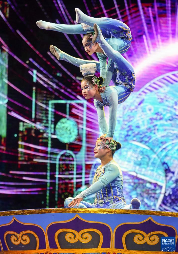 這是四川省遂寧市雜技團帶來(lái)的雜技《景泰藍的遐想——頂碗》(11月17日攝)。