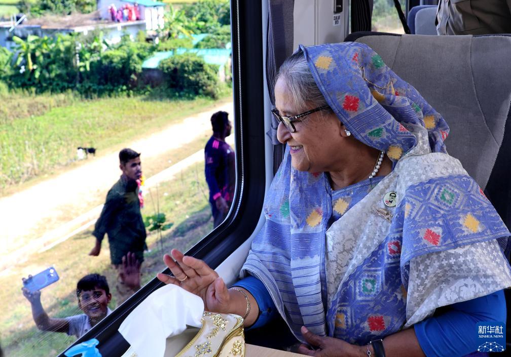 11月11日,在孟加拉國科克斯巴扎爾,孟加拉國總理哈西娜乘坐多哈扎里至科克斯巴扎爾鐵路列車(chē)。