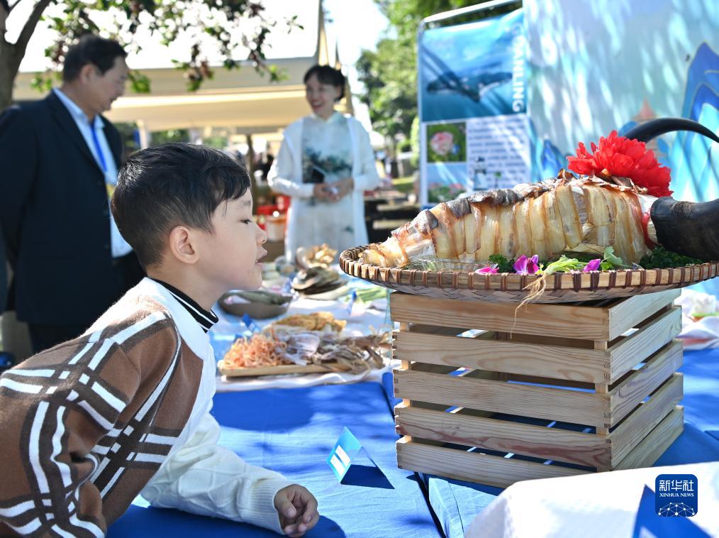11月18日,一名小朋友被美食吸引。