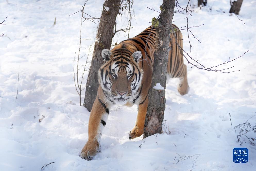 冰城哈爾濱市近日迎來(lái)數次降雪天氣,在黑龍江東北虎林園,散放區的東北虎在雪地活動(dòng)。