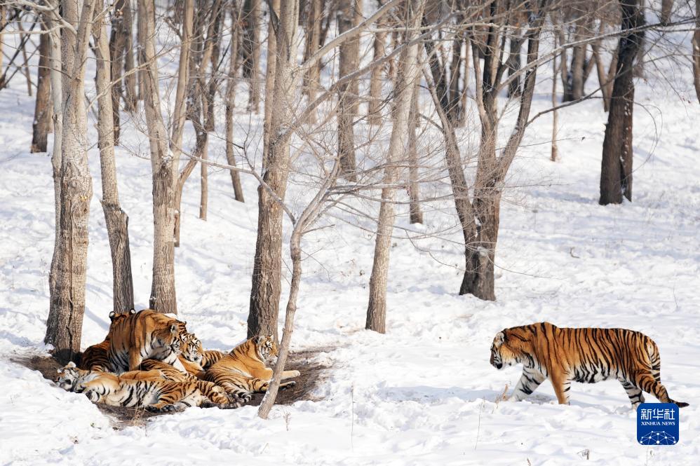 冰城哈爾濱市近日迎來(lái)數次降雪天氣,在黑龍江東北虎林園,散放區的東北虎在雪地活動(dòng)。