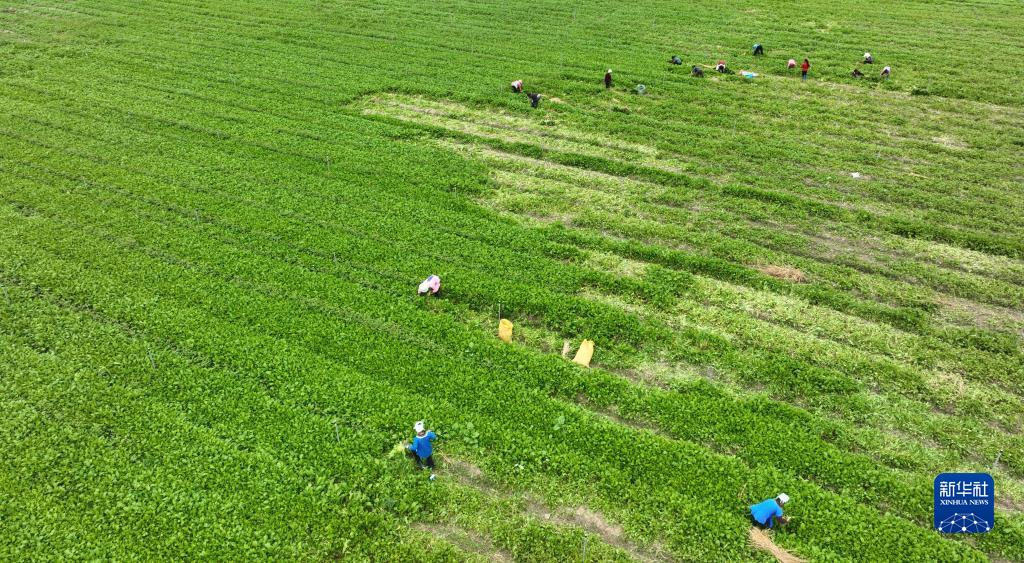 11月18日,村民在貴州省黔東南苗族侗族自治州榕江縣車(chē)江萬(wàn)畝大壩起青菜苗,準備移栽(無(wú)人機照片)。