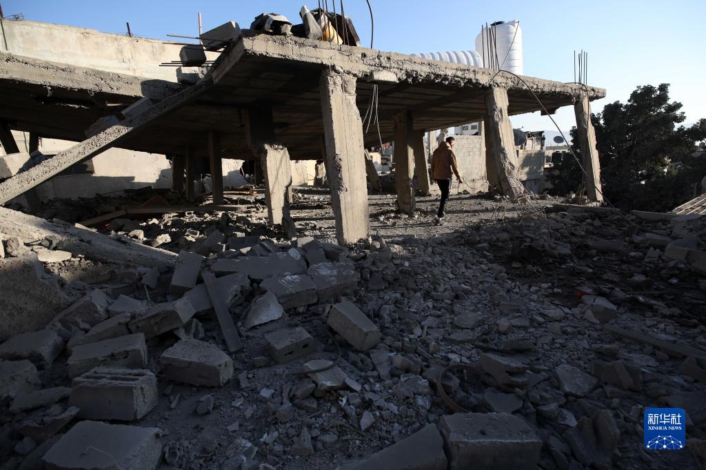 11月18日,在約旦河西岸城市納布盧斯的巴拉塔難民營(yíng),巴勒斯坦人查看沖突后的受損建筑。