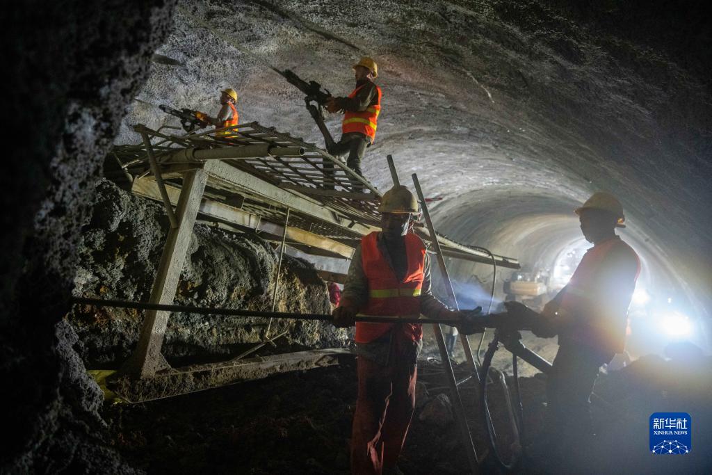 11月19日,中鐵五局施工人員在桑龍高速金家坡二號隧道內施工。