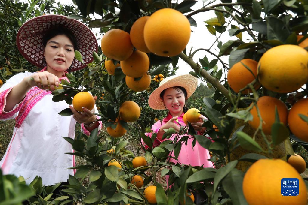 連日來(lái),貴州省黔東南苗族侗族自治州榕江縣2.6萬(wàn)畝臍橙進(jìn)入采摘季,員工忙著(zhù)采摘、打包、搬運臍橙,果園一派忙碌景象。