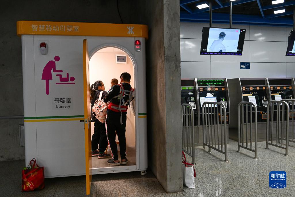 11月17日,在深圳地鐵紅樹(shù)灣站一處移動(dòng)母嬰室內,家長(cháng)為寶寶換紙尿褲。