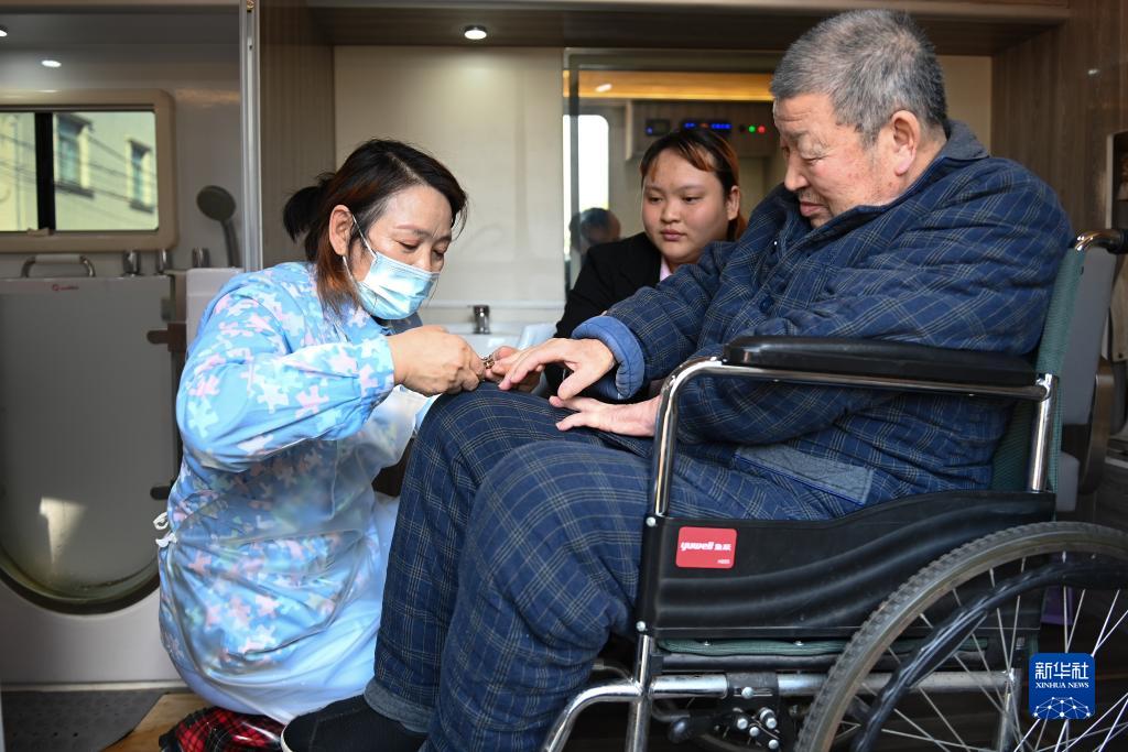 11月19日,助浴師在移動(dòng)助浴車(chē)為81歲老人吳森泉(右一)修剪指甲。為解決高齡失能老人在冬季面臨的洗澡難題,慈溪市在11月份正式啟動(dòng)“長(cháng)者助浴行動(dòng)”,讓高齡失能半失能老人在家門(mén)口就能享受到專(zhuān)業(yè)且安全的“助浴”服務(wù),老人助浴服務(wù)費用全部由慈善資金落實(shí)。