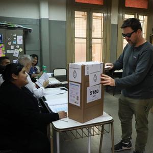 11月19日,選民在阿根廷首都布宜諾斯艾利斯的一處投票站投票。