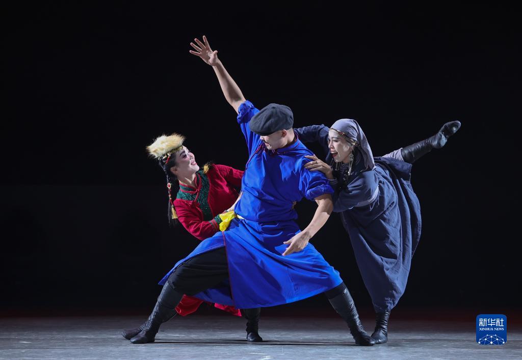 11月19日,新疆博爾塔拉蒙古自治州歌舞團演員表演作品《守·家園》。