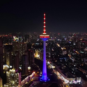 11月20日,沈陽(yáng)市遼寧廣播電視塔為世界兒童日亮燈(無(wú)人機照片)。