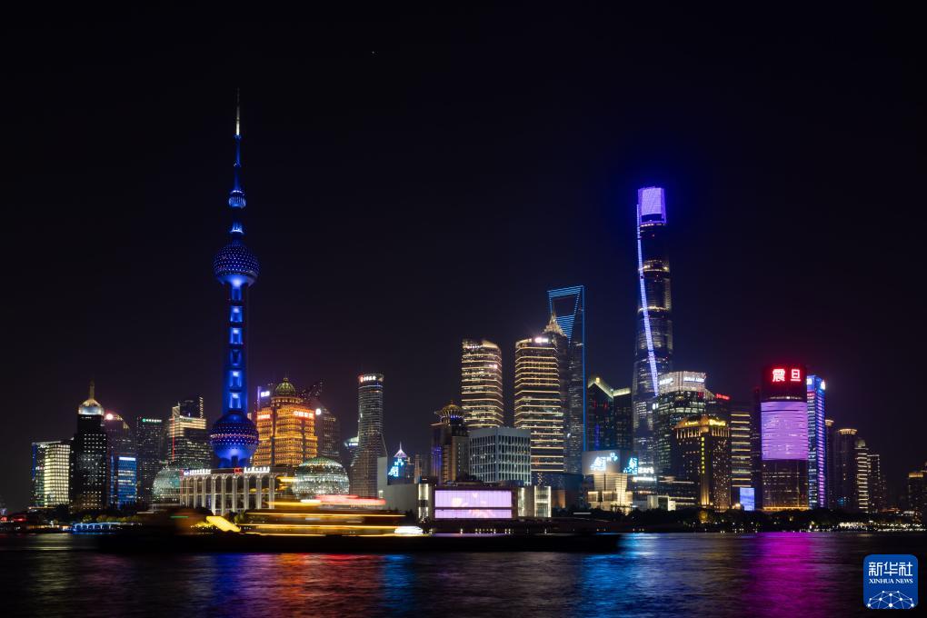 11月20日,上海陸家嘴地標建筑為世界兒童日亮燈。