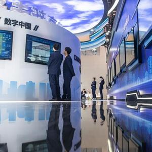 11月20日,在2023中國5G+工業(yè)互聯(lián)網(wǎng)大會(huì )創(chuàng )新成果展上,工作人員向參觀(guān)者介紹展品。