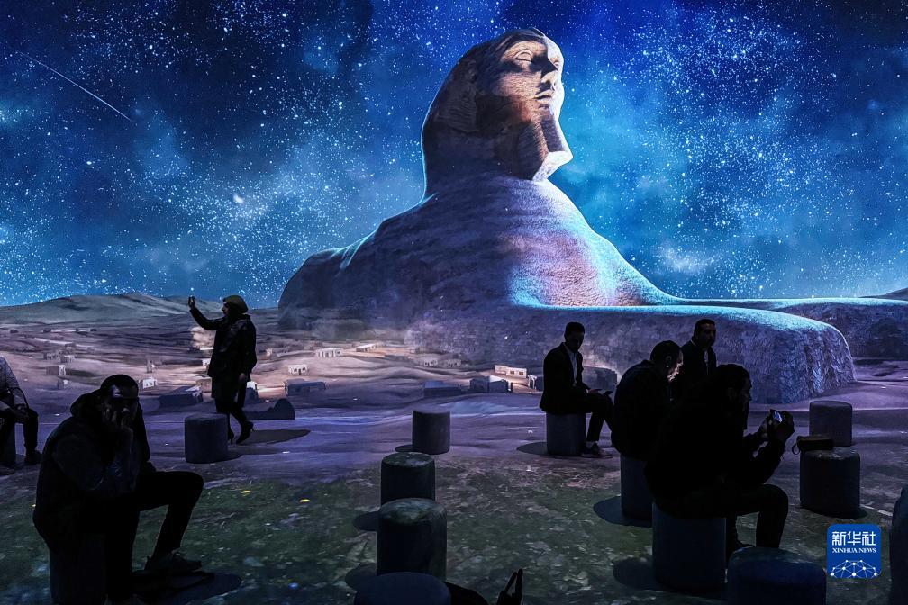 11月20日,人們在埃及吉薩的大埃及博物館參觀(guān)圖坦卡蒙沉浸式展覽。