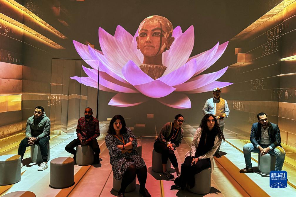 11月20日,人們在埃及吉薩的大埃及博物館參觀(guān)圖坦卡蒙沉浸式展覽。
