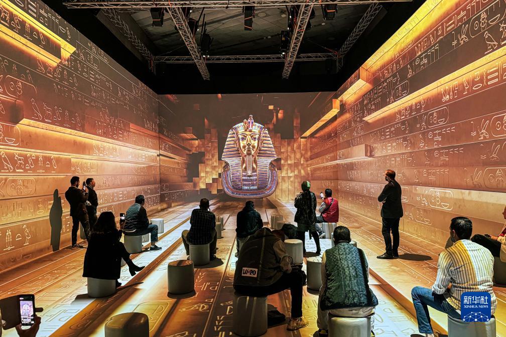11月20日,人們在埃及吉薩的大埃及博物館參觀(guān)圖坦卡蒙沉浸式展覽。