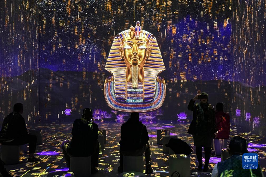 11月20日,人們在埃及吉薩的大埃及博物館參觀(guān)圖坦卡蒙沉浸式展覽。
