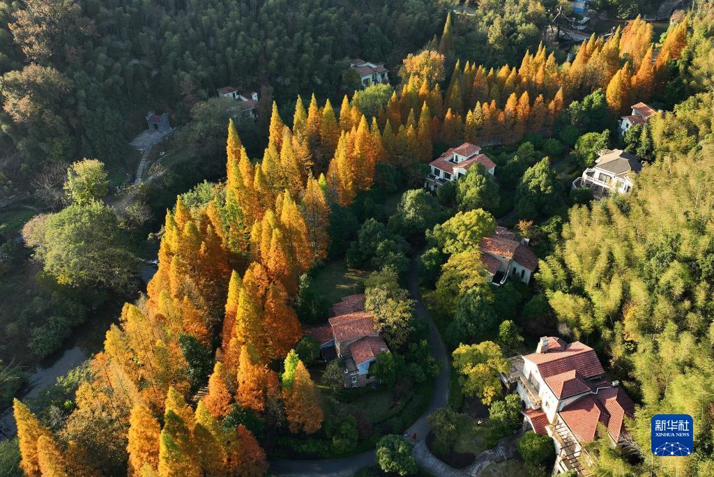 初冬時(shí)節,在位于江西省南昌市的梅嶺國家森林公園,紅色的水杉、黃色的銀杏、綠色的松柏等相互交錯,構成一幅美麗的冬日畫(huà)卷,吸引不少游客前來(lái)觀(guān)賞。