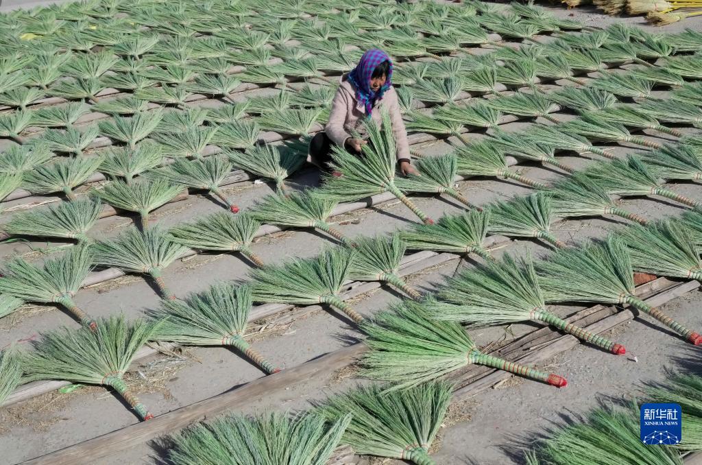 11月21日,河北省樂(lè )亭縣毛莊鎮一家笤帚專(zhuān)業(yè)合作社的社員在制作笤帚。