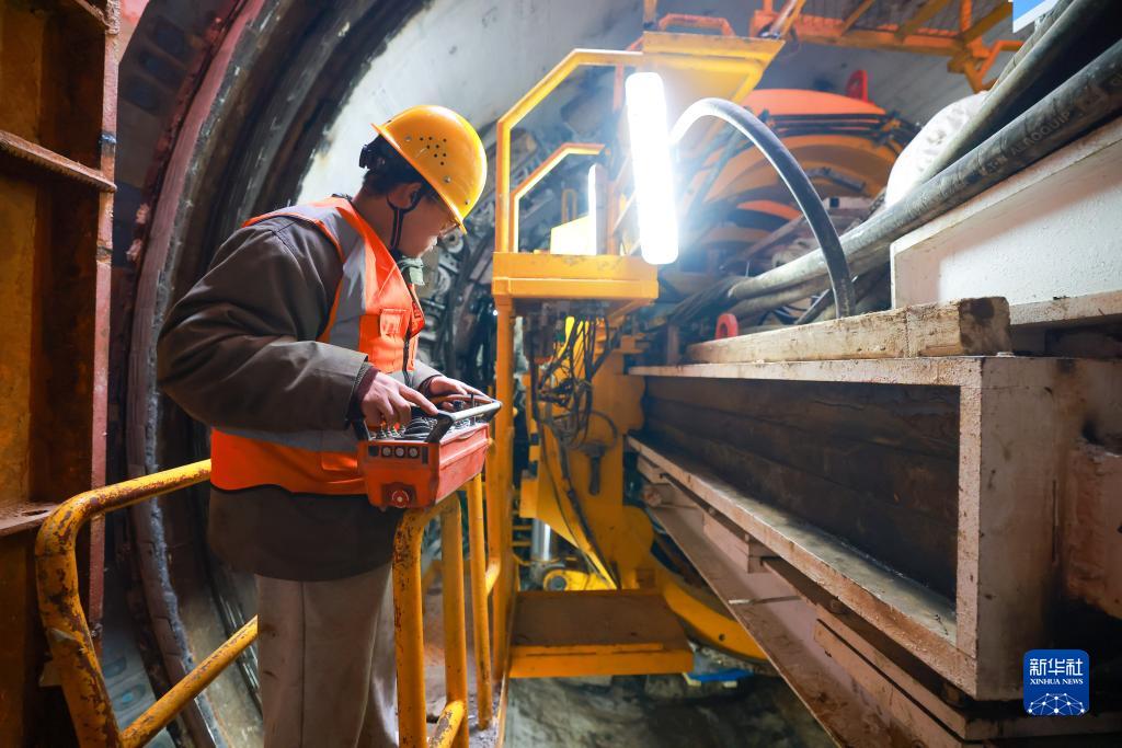 11月21日,中建八局工程技術(shù)人員在作業(yè)場(chǎng)所對盾構機拼接盤(pán)進(jìn)行調試。