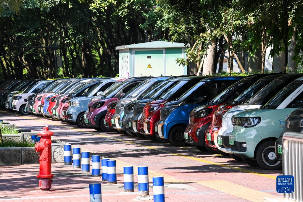 這是在廣西柳州市街頭拍攝的一處新能源汽車(chē)專(zhuān)用停車(chē)區(10月16日攝)。新華社記者 曹祎銘 攝