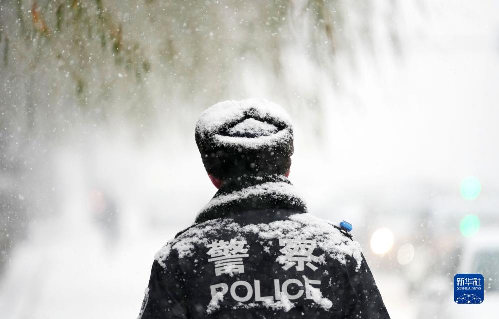 11月22日拍攝的雪中執勤的交警。