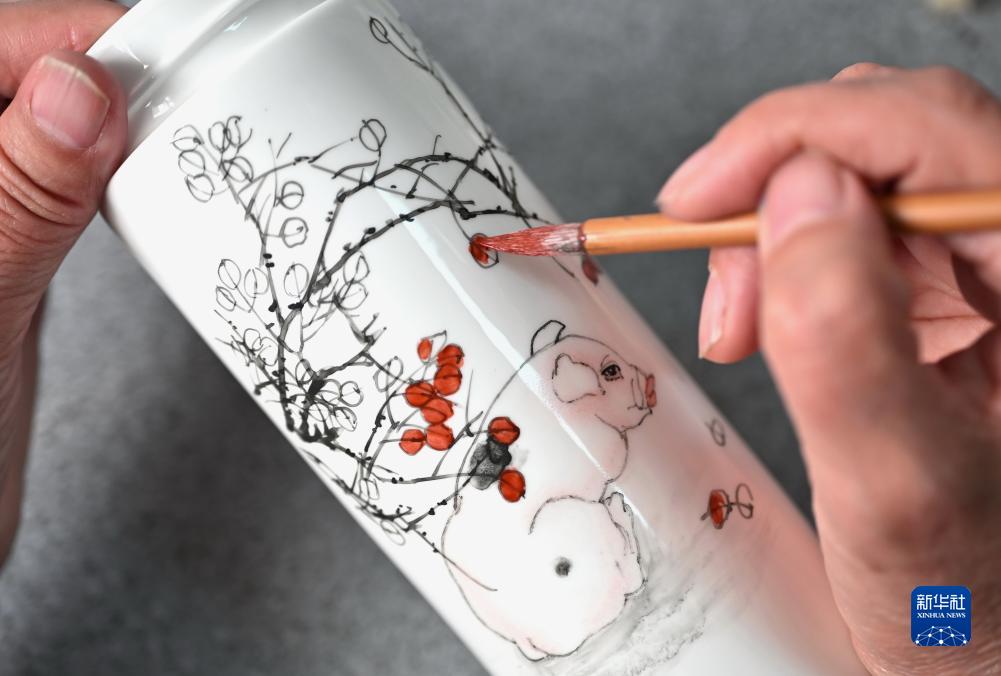 11月21日,一位工藝美術(shù)師在唐山市開(kāi)平區陶瓷文創(chuàng )產(chǎn)業(yè)園創(chuàng )作陶瓷繪畫(huà)作品。