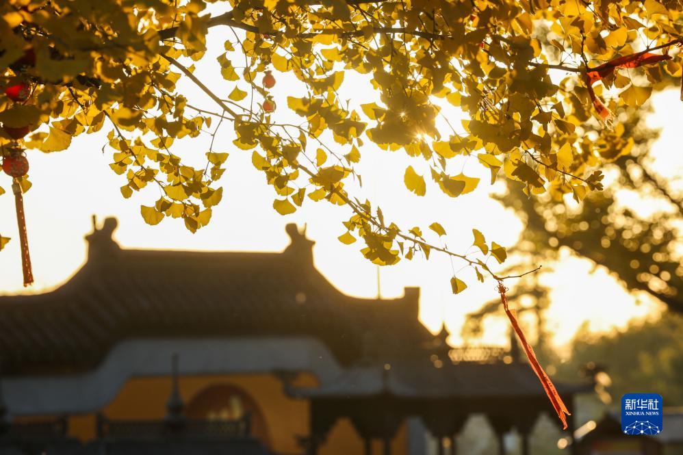 杭塢山位于浙江省諸暨市北部店口、次塢、姚江三鎮交界處,海拔500多米。初冬時(shí)節,杭塢山頂三德寺門(mén)外有著(zhù)500年和300年樹(shù)齡的兩株古銀杏金黃滿(mǎn)樹(shù),成為當地山鄉美麗的風(fēng)景。