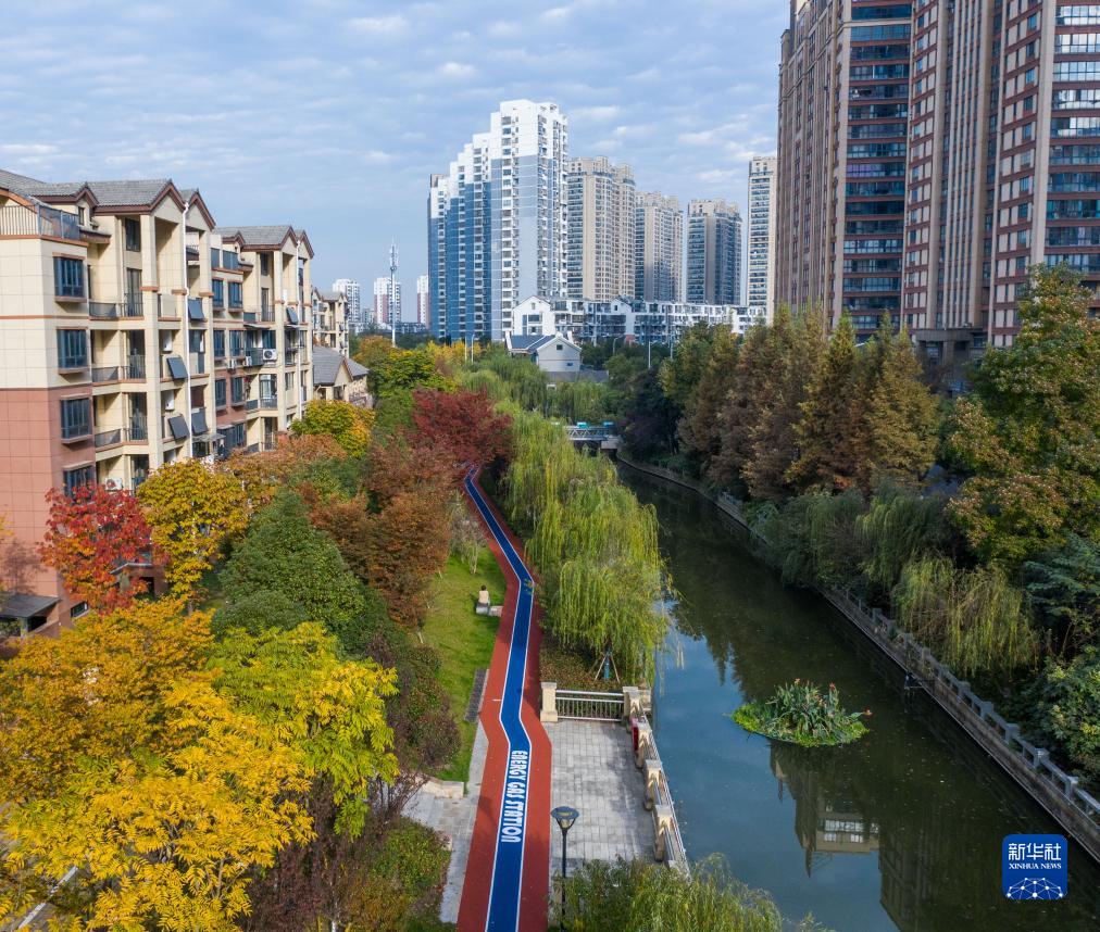 11月22日拍攝的龍泉街道新建成的環(huán)河健康步道(無(wú)人機照片)。
