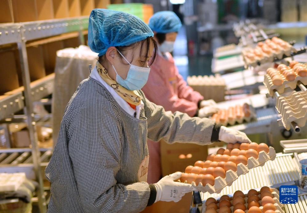 11月22日,工人在河北省唐山市蘆臺經(jīng)濟技術(shù)開(kāi)發(fā)區一家蛋雞養殖企業(yè)的車(chē)間分揀雞蛋。