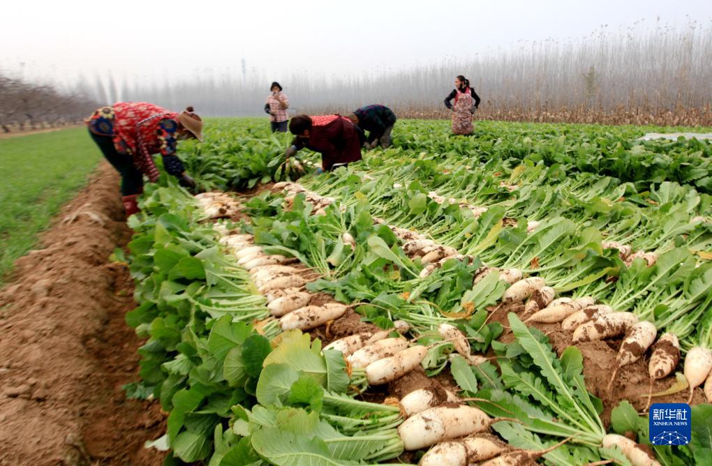 11月22日,山東省臨沂市平邑縣地方鎮農民在田間收獲白蘿卜。