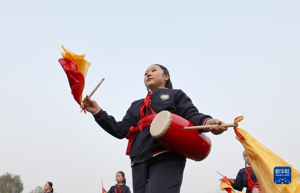 11月22日,河北省霸州市勝芳鎮紅光小學(xué)的學(xué)生在表演腰鼓。