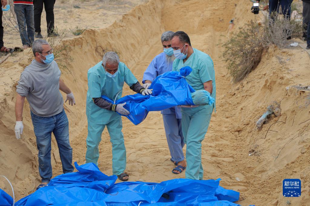11月22日,人們在加沙地帶南部城市汗尤尼斯埋葬巴以沖突遇難者。