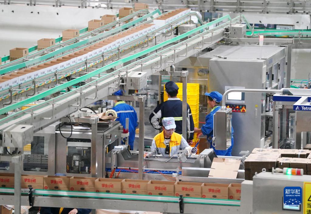 工作人員在威縣君樂(lè )寶乳業(yè)有限公司包裝車(chē)間工作(11月22日攝)。
