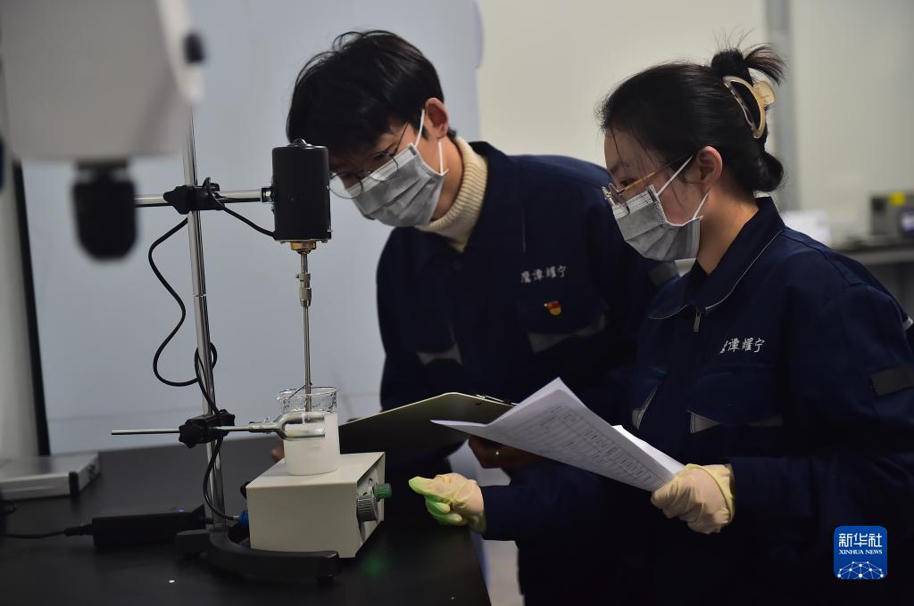 11月21日,在江西鷹潭耀寧新能源科技有限公司實(shí)驗室,技術(shù)工人在進(jìn)行材料實(shí)驗。