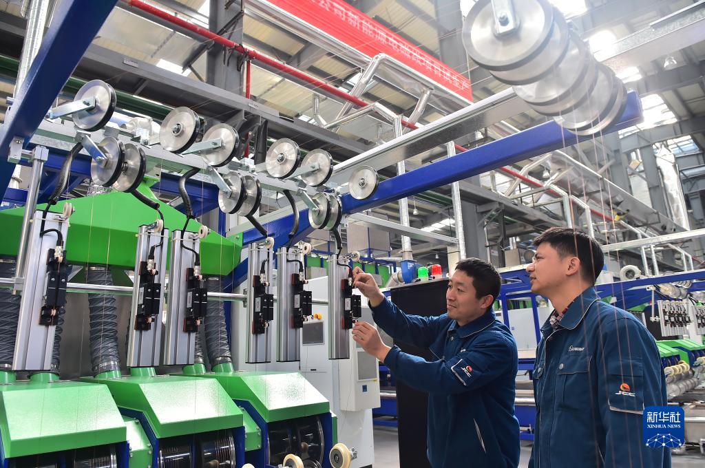11月21日,在江西江銅華東電工新材料科技有限公司生產(chǎn)車(chē)間,技術(shù)工人在生產(chǎn)線(xiàn)上巡檢設備。