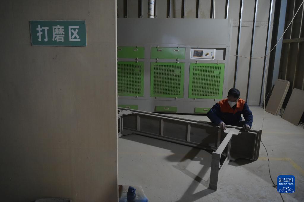 11月22日,工人在滑縣半坡店古典家具特色小鎮內一家企業(yè)的生產(chǎn)車(chē)間打磨家具。