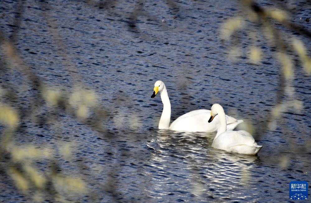 天鵝在密云水庫流域太師屯小南河內休憩(11月22日攝)。